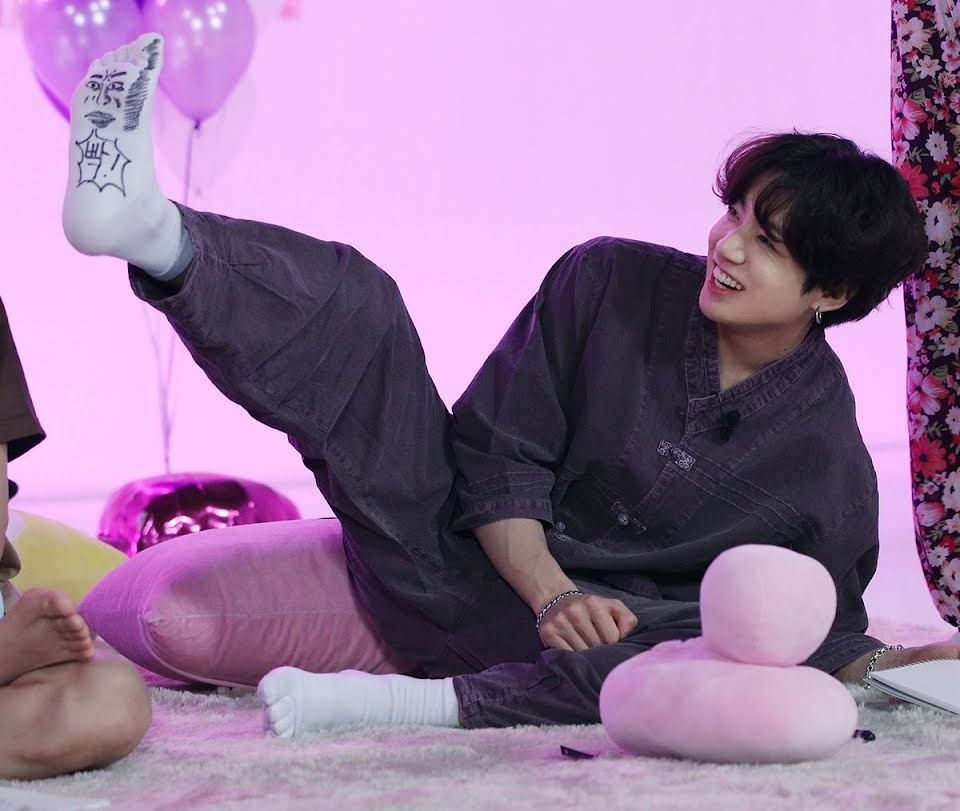 Во время прямого эфира Чонгук решил похвастаться на камеру своими новыми носками. Они выглядели довольно необычно, примерно, как перчатки, но только для ног. По мнению айдола, такой вариант намного удобнее и практичнее. К слову, ранее АРМИ замечали, что Чонгуку нравятся фантазийные носки. Он часто появлялся с яркими носками. Сейчас же он решил показать не только свои обновки, но и пальчики. Это действие моментально вызвало протест со стороны других участников.