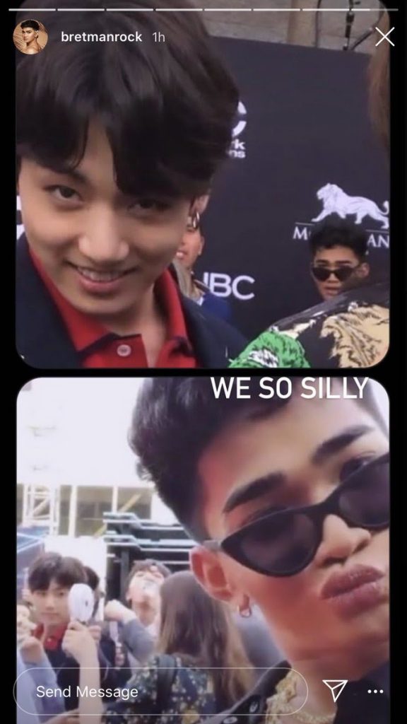 Привет, АРМИ! Познакомим вас с одним очень талантливым парнем по имени Брэтман Рок (Bretman Rock), филиппино-американским бьюти-инфлюенсером, который, как выяснилось, давным-давно вступил в ряды фанатов «Бантан». Визажисту даже удалось увидеть кумиров лично на событии 2018 Billboard Music Awards. Кстати, ниже вы можете посмотреть на коллаж со страницы Рока, который в свое время «взорвал» интернет! На нем Брэтман дурачится вместе с Чонгуком (Jungkook). Парни фотографировались на фоне друг друга и корчили забавные рожи.