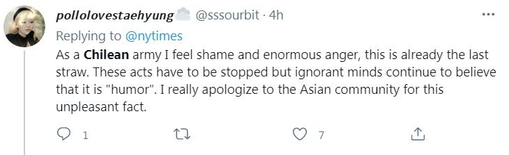 В ответ на хамские реплики героев программы фанаты BTS призвали создателей «Ми Баррио» ответить за унизительные шутки. «Особенно некрасиво делать это в то время, когда все азиатское сообщество страдает от расизма, который появился еще с пандемией COVID! На азиатов и так сейчас сильно давят!» — высказался один из АРМИ. Пока руководство проекта раздумывает над тем, просить ли прощение публично или же забыть об этом случае, завоевав дурную славу, главенство над постыдной выходкой взяли чилийцы. Пользователи сети массово начали просить прощение за выпуск, пытаясь доказать тем самым, что никто из жителей Чили не разделяет позицию, озвученную в «Mi barrio».