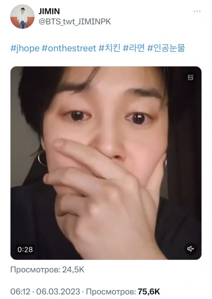Чимин (Jimin) не на шутку испугал нас сегодня! В одном аккаунте Twitter был опубликован короткий ролик, в котором на заставке и в течение первых нескольких секунд демонстрируется лицо Чимини, закрывшего рот рукой. Парень будто замер в ожидании чего-то или пытается не закричать от страха и боли. Добавим, что больше всего эмоций передают именно его глаза.
