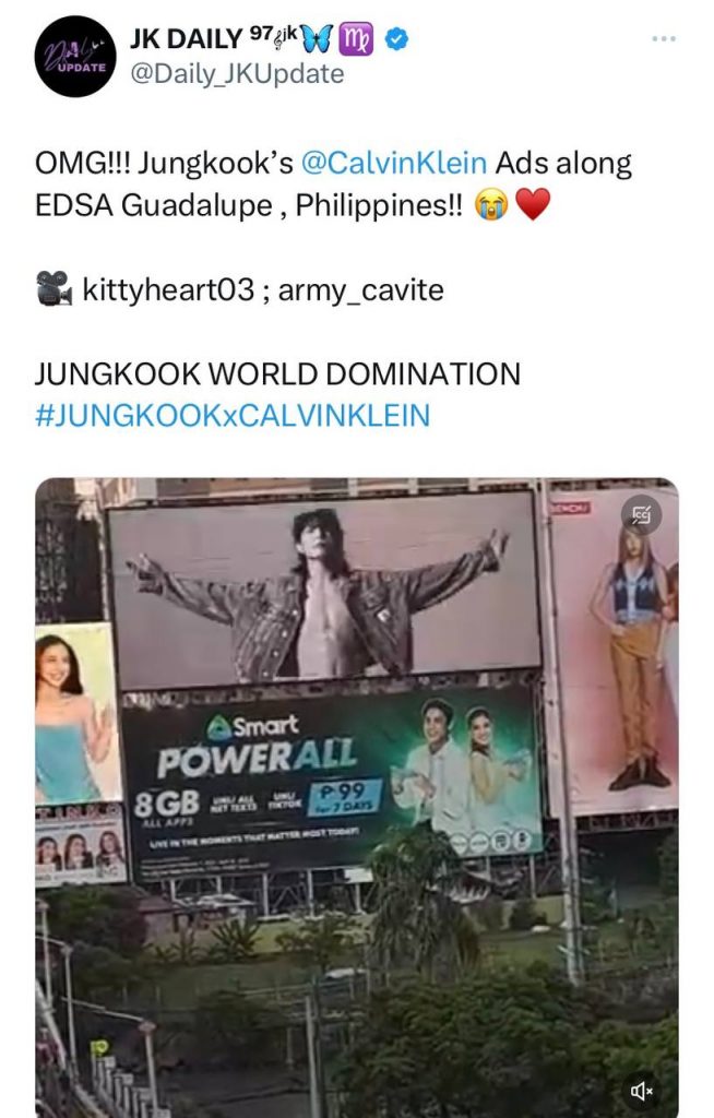 Личным присутствием филиппинцев Макнэ не порадовал, но его ролики, крутящиеся на уличных билбордах — это тоже приятный сюрприз для фанатов. Кадр, представленный ниже, кстати, взят из рекламы для Calvin Klein. В ней селеб вышел просто обворожительным. В комментариях к постал публика отметила, что было бы неплохо Гуку сняться вместе с Лисой (Lisa) из Blackpink для какого-нибудь мощного коллаба, как недавно это сделал Тэхен (Taehyung).
