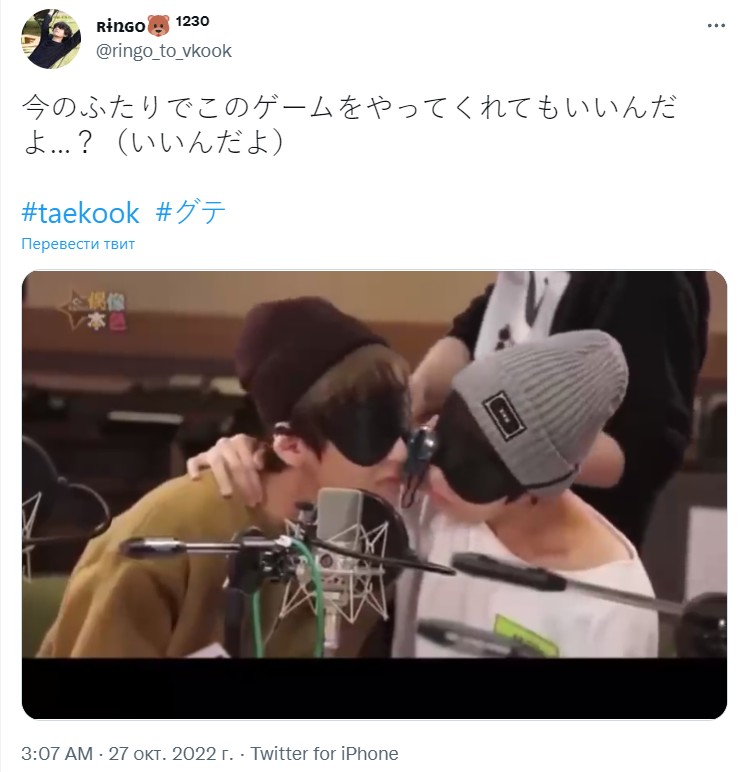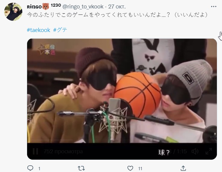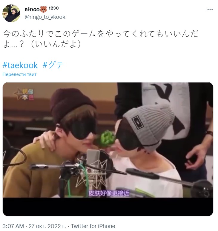 Мальчики «Бантан» постоянно участвуют в забавных играх, экспериментах и шоу, где ребят пытаются поймать на компрометирующих темах или заставляют играть в какие-то странные и необычные для зарубежной публики игры. На одной из программ селебам Чонгуку (Jungkook) и Ви (V) предложили забаву с закрытыми глазами. Надели на них повязки на глаза, а затем мальчики должны были прочувствовать щекой предмет, который положили между ними. В первую очередь это был большой баскетбольный мяч. Он не вызвал никаких трудностей, но с каждым разом предмет был все меньше по размеру, а лица Тае и Гука все ближе друг к другу.