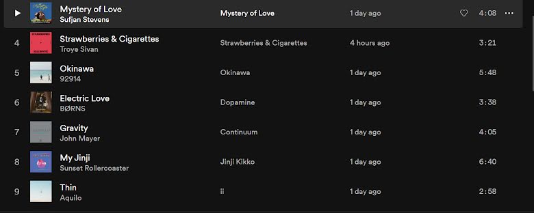 Сегодняшняя (7 января) активность Чонгука на Spotify привлекла АРМИ. Первый лайкнутый плейлист «макнэ» содержал множество треков от разных мировых исполнителей, включая Троя Сивана (Troye Sivan), Джона Майера (John Mayer) и Гарри Стайлза (Harry Styles). Там также нашлось местечко для трека из нашумевшего фильма «Зови меня своим именем» (Call Me by Your Name).