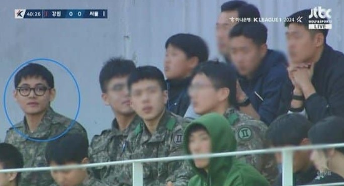 На днях Ви (V) вместе со своими сослуживцами побывал на футбольном матче, где, конечно же, его узнали поклонники. Но Тэхен казался публике каким-то другим. Необычным, но очень милым. Это случилось по 2 причинам. Во-первых, АРМИ не привыкли видеть Тэхена в военной форме, а во-вторых, они также не привыкли к Тэ в очках.
