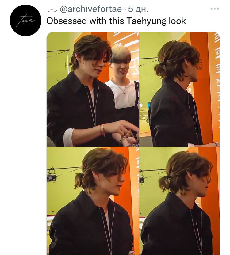 Приглядевшись, можно заметить очаровательный хвостик, в который ТэТэ собрал свои волнистые волосы. АРМИ не могут сдержать своего восторга, поэтому отправляют сотни комментариев: «Как ему шли длинные волосы, я просто перестаю контролировать себя», «Какой аккуратный хвостик», «Вроде, небрежный вид, но насколько стильно и со вкусом», «Выглядит невероятно», «Напомните, откуда этот момент?», «Ви, пожалуйста, верни нам длинные волосы. Поддержите, кто согласен», «Завораживают эти волнистые волосы».