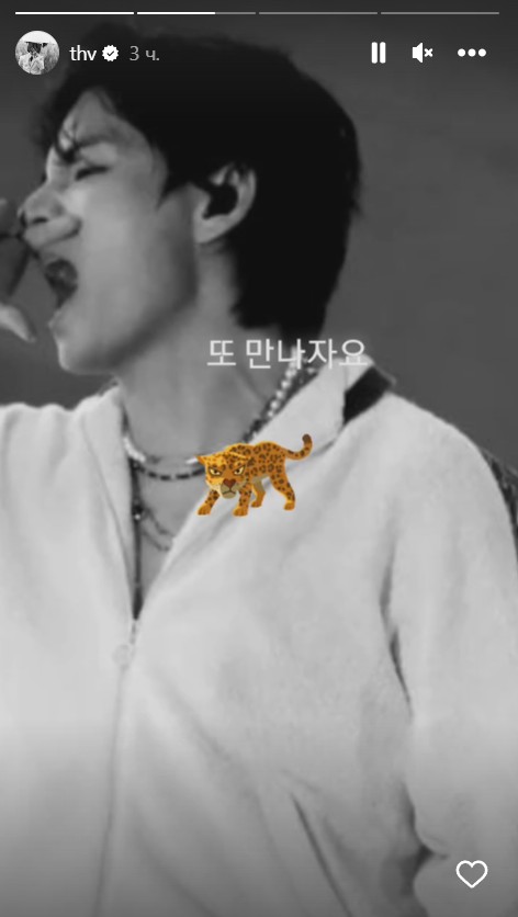 Больший рейтинг набрало изображение с концерта, где Ви буквально кричит в микрофон, исполняя трек и полностью вкладывая все свои силы в эмоции. Тэ прикрепил к публикации стикер дикого и недовольного животного, наверное, намекнув, что с этим «тигром» лучше не связываться! Надпись на фото, по словам одного из АРМИ, гласит: «Увидимся». Кому же он адресовал это послание?!