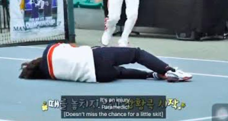 Во время тренировки Тэхен (Taehyung) получил резкий удар в плечо и внезапно упал на землю. Шуга (Suga) тут же стал вызывать врача на корт, чтобы специалист облегчил острую боль Ви (V). Тут же на площадке появился Чимин (Jimin). Айдол подбежал к приятелю, который изнывал от боли, взял его на руки и понес к врачу. Это был невероятно трогательный момент, доказывающий, что парни всегда готовы оказать поддержку друг другу, даже в самую сложную минуту.