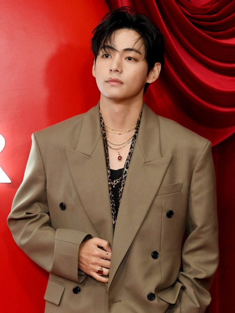 В качестве наряда Ви выбрал бежевый брючный костюм, черный топ и леопардовый шарф, украшенный позолоченной брошью. Его образ сочетал романтическое настроение и непринуждённый шарм. Он наслаждался арт-выставкой, позировал перед камерами, давал небольшие интервью журналистам и, конечно, улыбался в своей очаровательной манере.