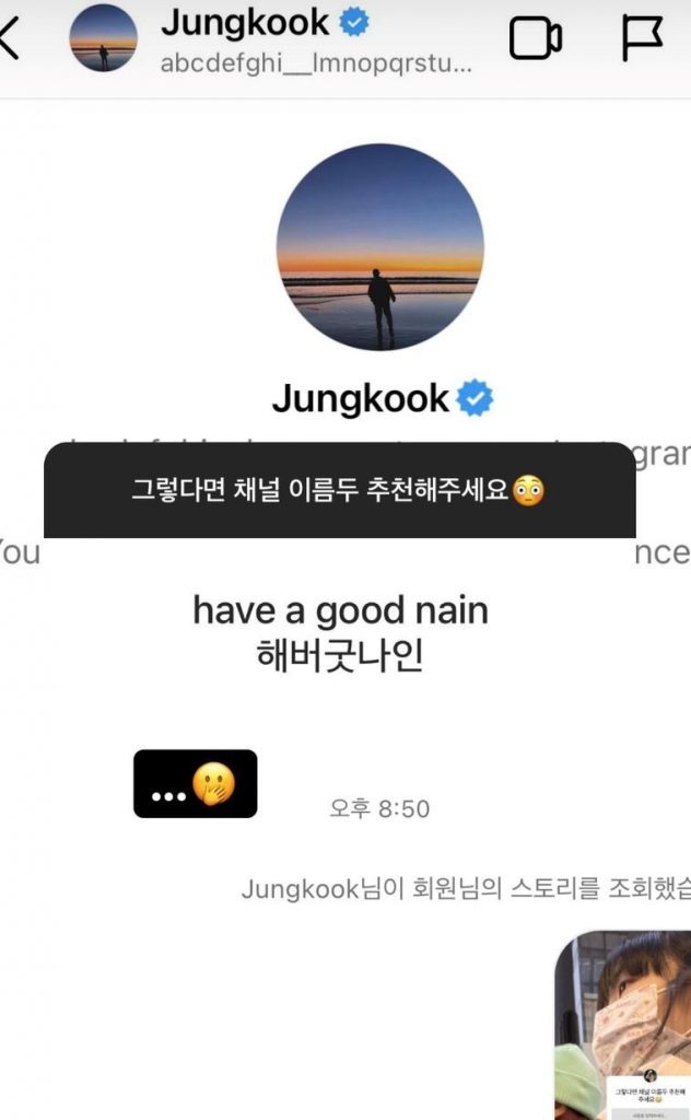 Во время своего интервью в одном из корейских шоу Наин рассказала, что является поклонницей BTS уже шесть лет, а Чонгук — ее биас. Творчество Макнэ оказало сильное влияние на становление девушки. Она стремилась работать также упорно, как и музыкант и училась копировать его хореографию. Теперь поклонники Bangtan Boys пристально следят за развитием событий, прекрасно понимают, что у ребят может что-то получиться, ведь Чонги старается никогда не показывать общественности свою симпатию к девушкам, но в этот раз он не смог сдержаться и написал Наин!
