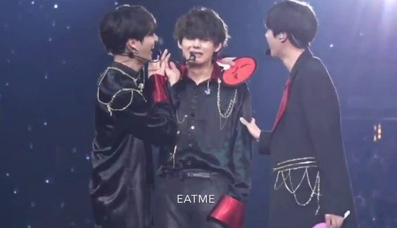 Однажды Чонгук (Jungkook), Ви и Джин (Jin) устроили самую настоящую драму перед поклонниками АРМИ. Золотой Макнэ случайно легонько ударил ТТ по шее, что спровоцировало истерику Вишни. Он посмотрел в зал со страдальческим взглядом, начал закатывать глаза и пустил слезу в ожидании того, что кто-нибудь из рядом стоящих начнет успокаивать его и гладить по головке. Разумеется, Чонги взял дело в свои руки и начал виновато оправдываться перед «жертвой обстоятельств», но обиженный Тае не захотел кидаться в объятия лучшего друга, отвернулся от него и обратился за помощью к Джину.