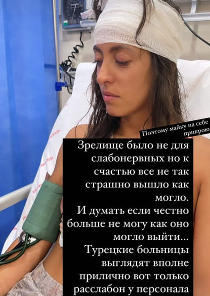 Оказалось, что Анастасия во время отдыха в Турции спасала ребенка из бассейна и рассекла себе голову.