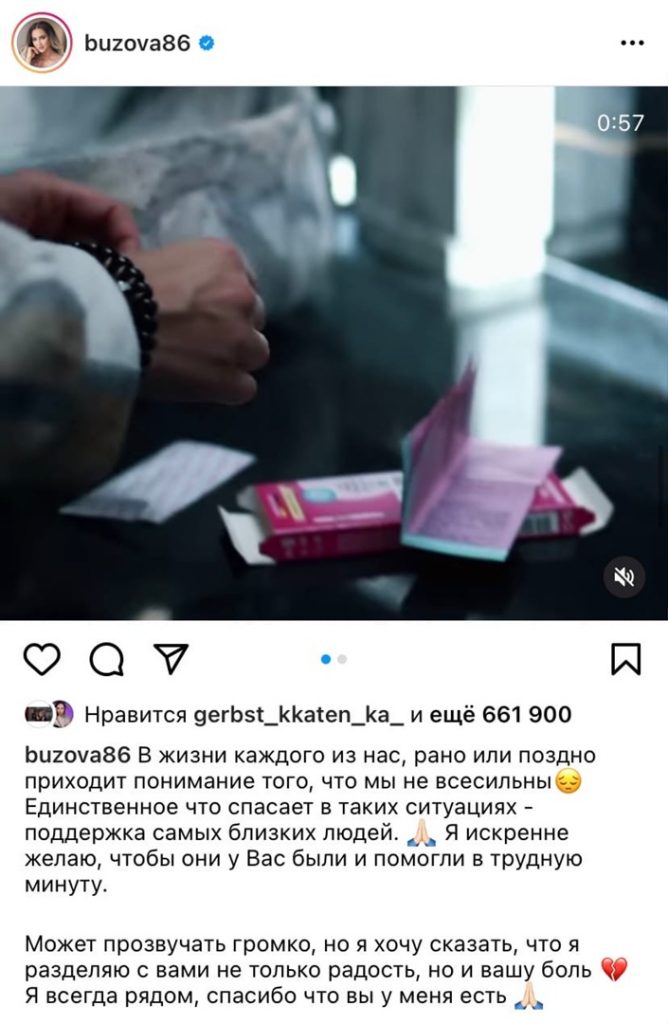 На днях Ольга Бузова опубликовала очередной вайн, посвященный проблемам в отношениях семейных пар. Казалось бы, ничего необычного. Такие съемки были ежедневной «процедурой» инстадивы еще «при Даве», но если обратить внимание на тему ролика и комментарий Ольги под постом, который явно был написан от души, можно сделать вывод, что проблема, описанная в видео, имеет для нее большое значение.