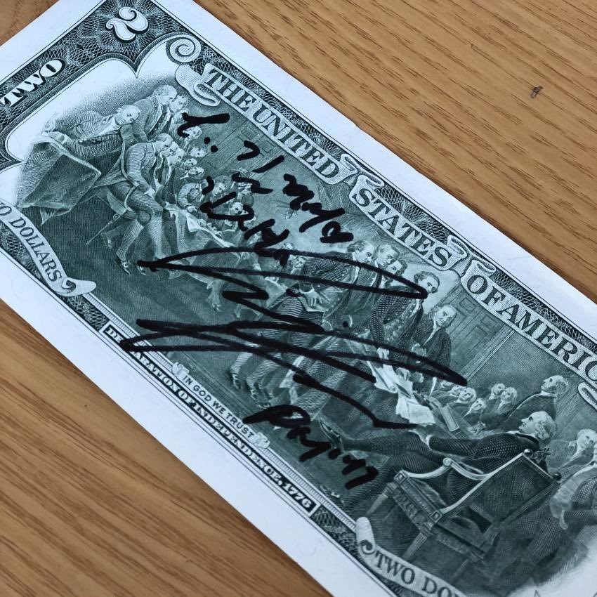 Встретилась — и попросила музыканта оставить свой автограф на купюре. 2-долларовая бумажка тут же сильно выросла в цене. В личных сообщениях девушки теперь море предложений: кто-то хочет выкупить автограф, кто-то — обменять его на что-нибудь не менее ценное (но что вообще может сравниться с автографом лидера твоей любимой группы?).