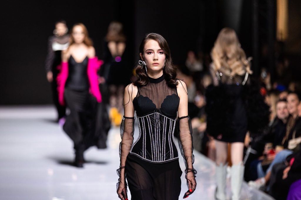 После состоится еще один показ от известного бренда MALINA BONITA, чья концепция в коллекции 2023 выражена в сочетании вечернего дресс-кода и сдержанности офисного стиля. Именно такой дуализм поспособствовал получению новых лаконичных образов и форм, а лейтмотивом коллекции послужили трендовые направления нулевых, нуар, блеск во всех его проявлениях, а также переосмысление современных векторов вечерней моды. Эта основная идея выражена в инновационных материалах, произведенных на ведущих фабриках мира.