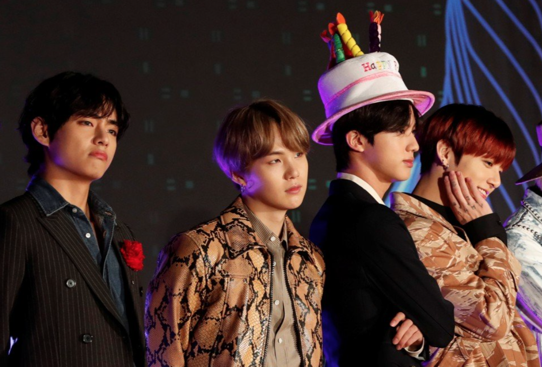 Наконец, Джин (Jin) поразил всех своим ярким и необычным аксессуаром: парень решил разбавить свой простой образ бело-розовой высокой шляпой со свечками. Так музыкант напомнил публике о своем дне рождении: 4 декабря Джину исполнилось 27 лет.