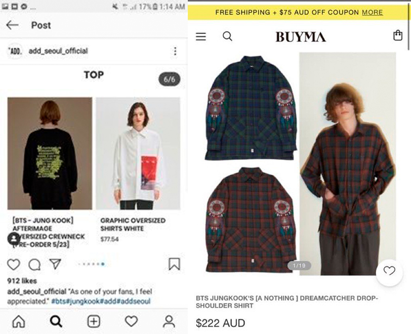 Чтобы сделать свою одежду еще более привлекательной, продавцы используют в названиях товаров имя Чонгука, а фотографии музыканта в одежде от известных брендов то и дело появляются в Istagram и Twitter аакаунтах, посвященных моде.