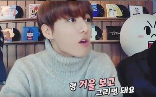 После этого Чонгук предложил музыканту посмотреть в зеркало и нарисовать то, что он видит.