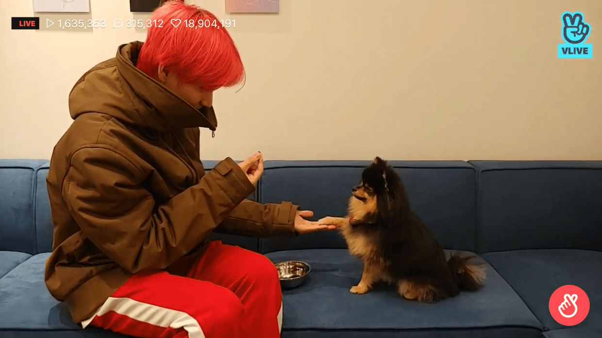 Вчера Ви (V) из BTS провел LIVE-трансляцию, познакомив поклонников со своей собакой Yeontan’ом. Это знакомство стало приятным сюрпризом для ARMY, которые тут же влюбились в пушистого друга Ви.