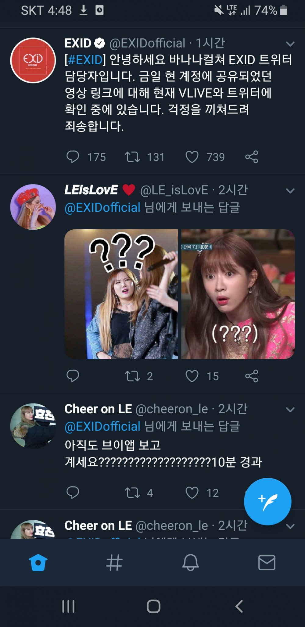 [#EXID] 안녕하세요 바나나컬쳐 EXID 트위터 담당자입니다. 금일 현 계정에 공유되었던 영상 링크에 대해 현재 VLIVE와 트위터에 확인 중에 있습니다. 걱정을 끼쳐드려 죄송합니다.