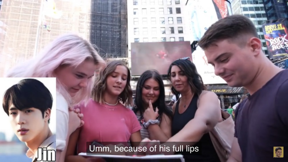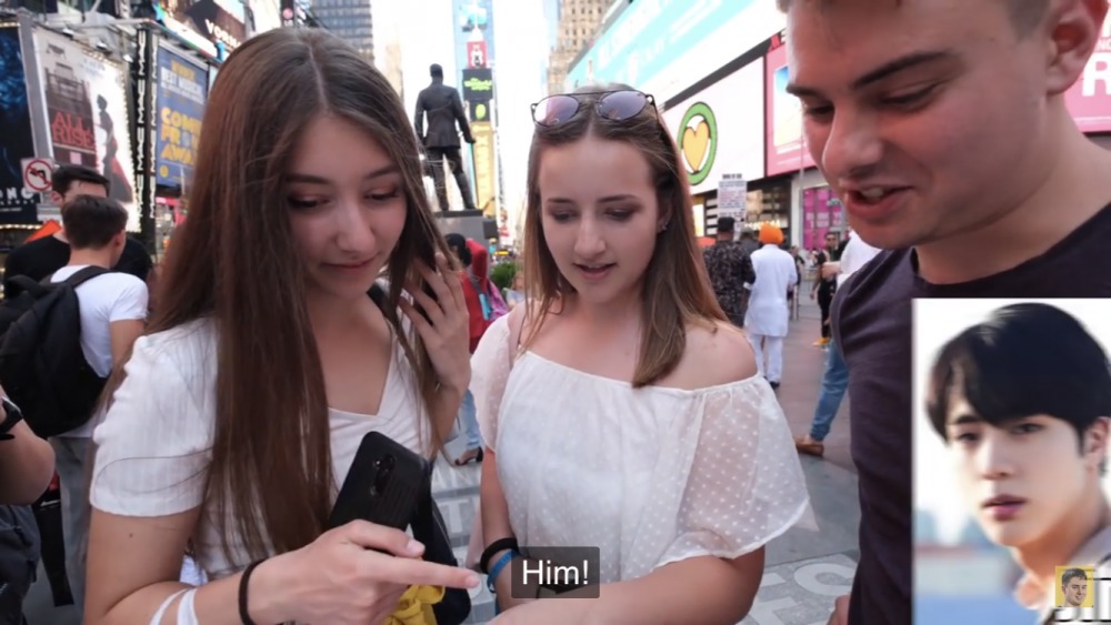 На днях один блогер решил спросить у людей на улицах Америки, кого они считают самым красивым участником BTS. Неудивительно, что Джин (Jin) заработал больше всего голосов. Ведь своей внешностью парень привлекает внимание многих. Даже иностранным мужчинам нравится лицо Джина.