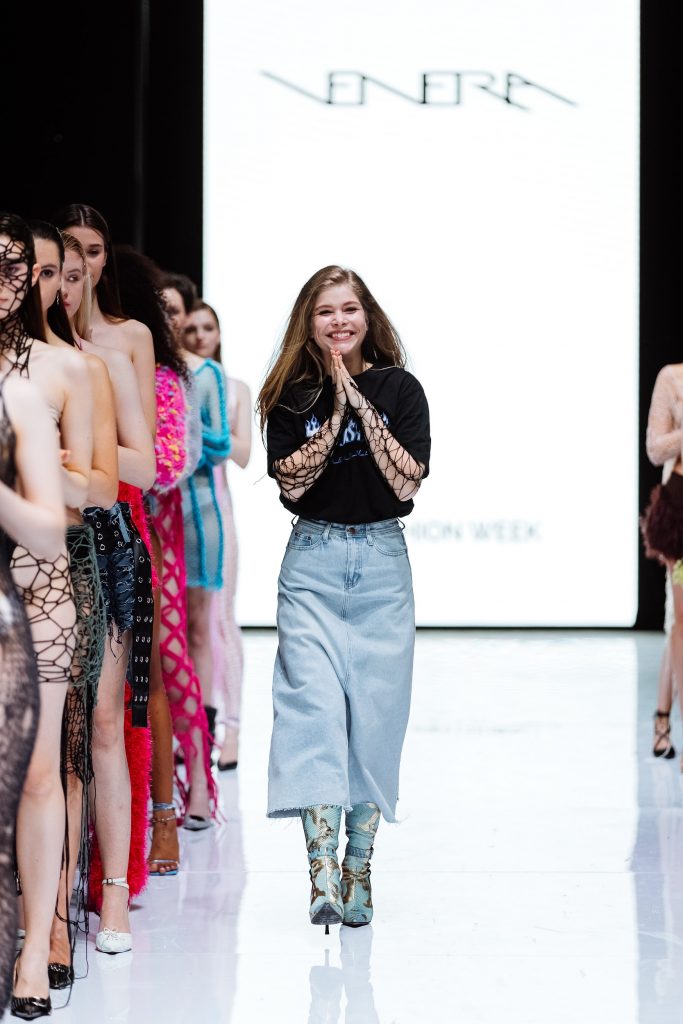 Следом на подиуме самобытный бренд одежды и аксессуаров VENERA представил коллекцию, вдохновленную исключительно женщинами как нимфами, музами и богинями. Ажурность образов подчеркивает изгибы и очертания девушек. А цветовая палитра от нежного «розового румянца» до дерзкого чёрного и ярких, сочных оттенков отражает их разные настроения. Большинство образов созданы в единственном экземпляре из лимитированной пряжи, что в очередной раз доказывает индивидуальность каждой Венеры. VENERA – это история про одежду, которая создается вручную, с помощью разнообразных техник вязания спицами, крючком, узелкового плетения. Благодаря сложным узорам и обилию фактур и видов пряжи каждое изделие получается уникальным. Важнейшая задача бренда пробудить в женщине ее изящество, прелесть и сексуальность. Вдохновить на рождение себя в качестве богини.