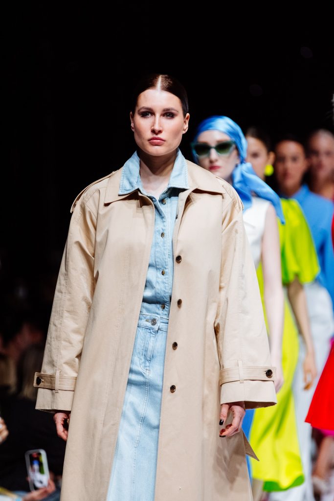Завершал четвертый день показ от премиального бренда одежды CHARUEL. В их коллекции Весна’23 – натуральные по составу ткани: шерсть, шелк, хлопок, лен, рами (крапива); мятые, жатые, крафтовые фактуры, имитирующие природные материалы, такие как соты и рогожка и цвета кофе, свеклы, корицы, шафрана, горчицы и неокрашенного льна. CHARUEL не первый сезон подхватывает тренд на экологичность – один из основных в современности. Бренд придерживается концепции «Дофаминовый гардероб», отголосок постпандемии. Людям нужна одежда, поднимающая настроение. Яркие, порой неестественные цвета и фактуры, заимствованные из нарядного гардероба, присутствуют в повседневных образах. Брючные костюмы разбавляет токсичный, неоновый цвет.